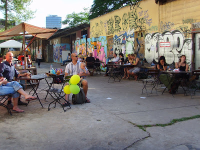I got a great T-shirt from berlinillustrated and a really cool handy pouch and an ipod pouch from nikoki. Nikoki's stand was one of my faves there. She makes sweet softies, bags and aforementioned handy and ipod pouches among other beautifully sewn handmade objects. Miriam Schneiderman was also there selling her lovely obi-belts and really fun hood-scarfs, there was also another very cool stand that sold bags and wallets called kayberlin and several other Berlin artists and artisans . The next Trendmafia is on Saturday October 4 and for the time being looks like it might be the last date until Spring because the warehouse isn't heated. I am definitely going back and doing some early Xmas shopping. So if your are in Berlin on October 4th mark it down in your calendar as a great opportunity to buy handmade!